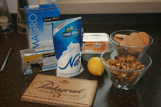 Mousse de chocolate com bolacha, natas e noz